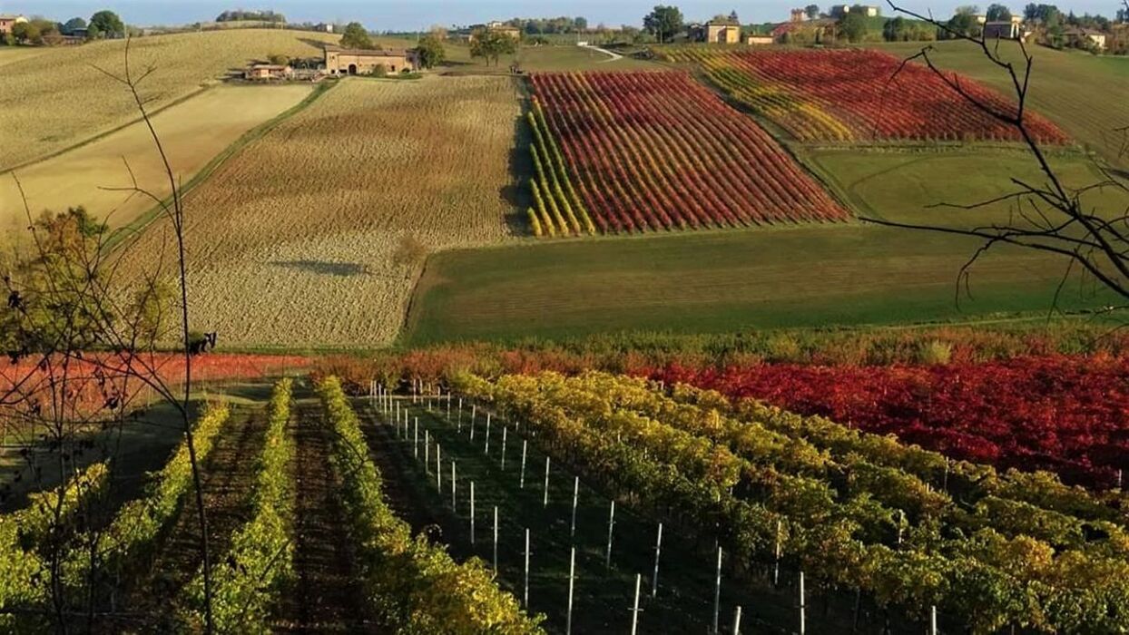 In un ambiente in cui le colline preappenniniche dominano la scena, questo delicato antico borgo è adornato da filari di vigneti.